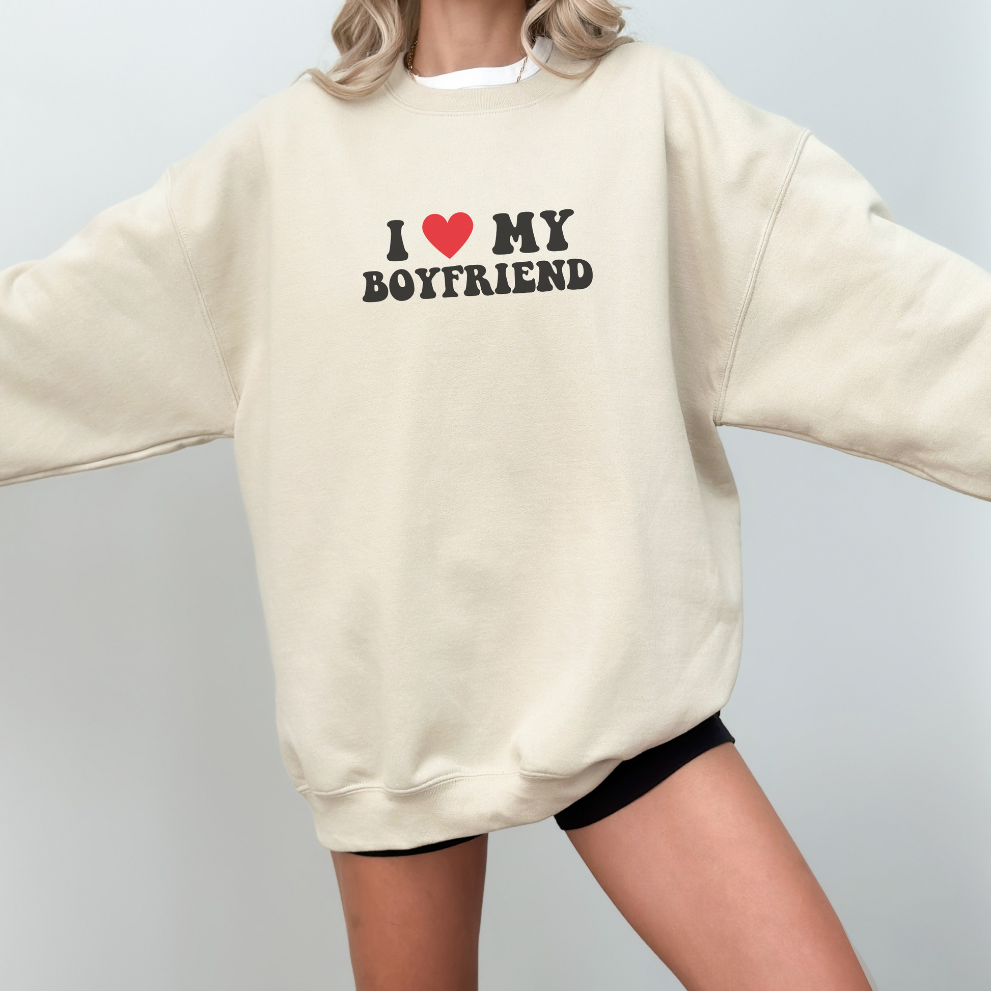 I heart my boyfriend cute and trendy sweatshirt, I love my boyfriend retro sweatshirt, funny sweatshirts for her, sweaters for her, Valentine's day sweaters, Valentine's gift ideas, Valentine sweatshirts, funny sweatshirts, meme sweatshirts, trendy sweatshirts.